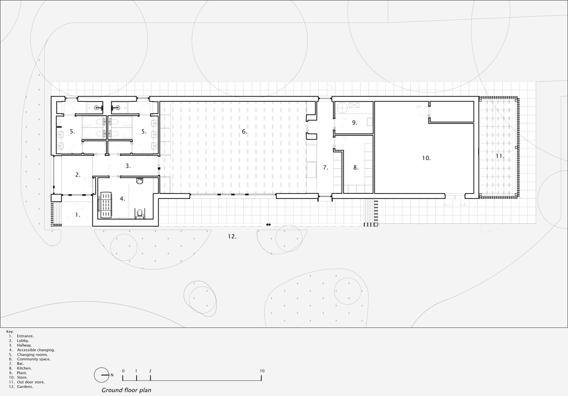 entrance are all on the left of the building, with refurbished changing and WC facilities part of the work. A new Part M compliant WC and shower room will be included at entrance level.