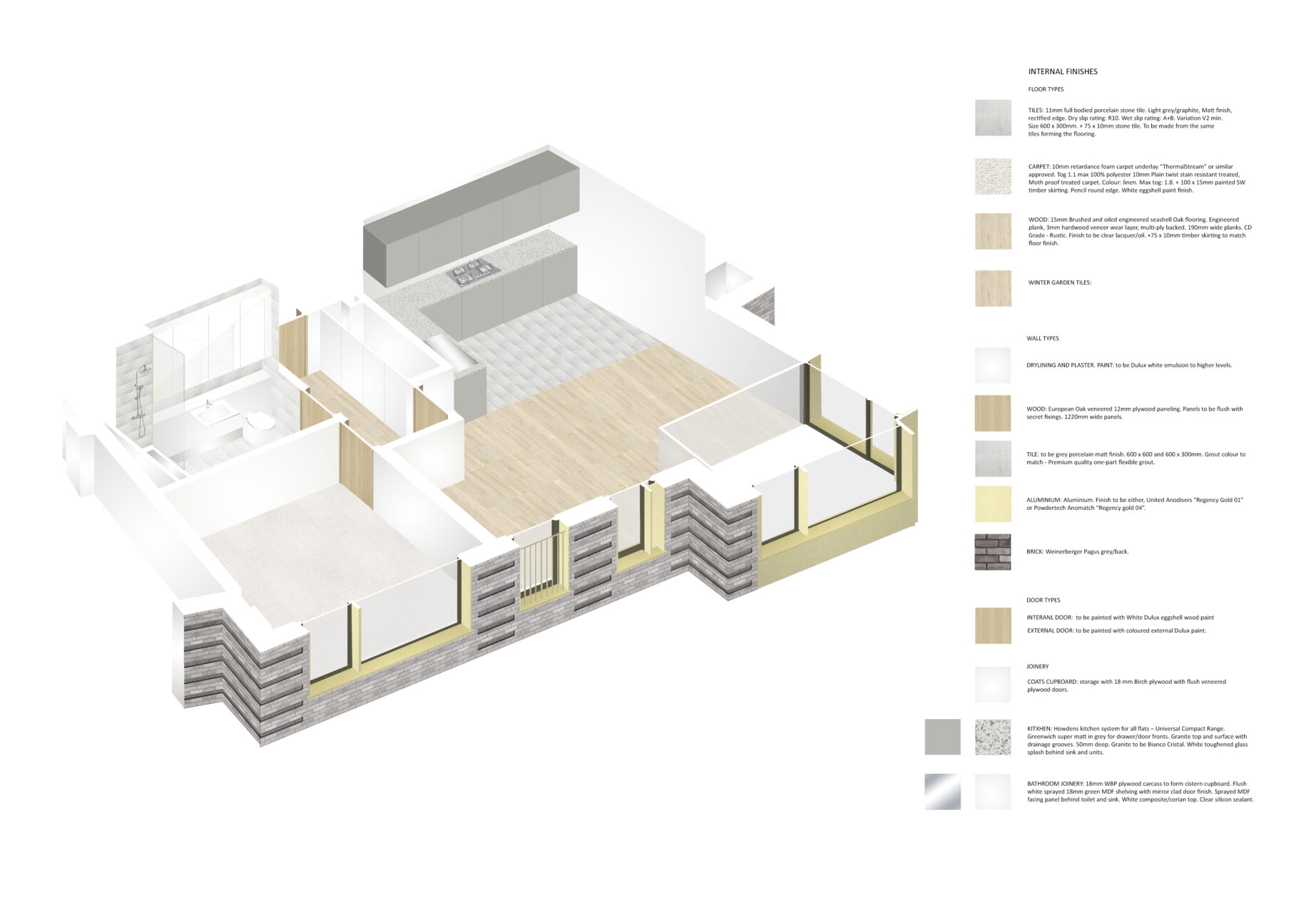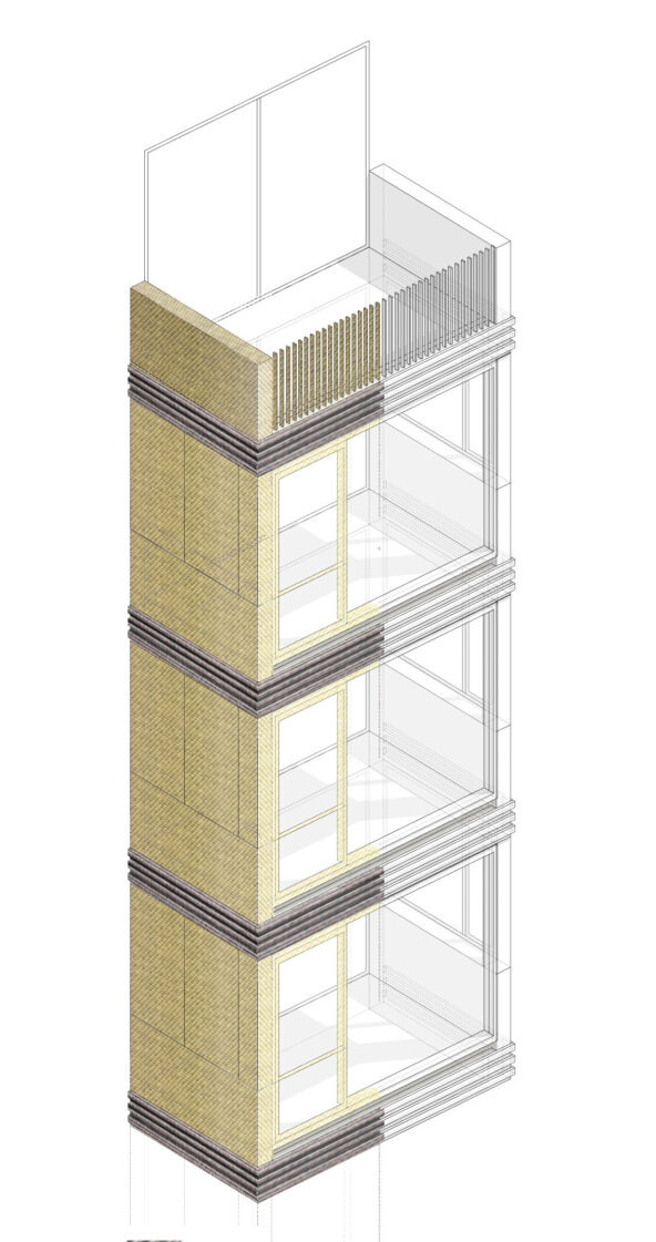Architecturally the winter gardens provide a relief and depth to the facades, so that the facade steps in and out with the winter-gardens providing light and shadow across the facade and a changing facade of metal and brick to one side and glazing to the other. This will also allow for views through the winter gardens across the building, all of which reduces the mass of the building and increases the texture, grain and proportion of the scheme.