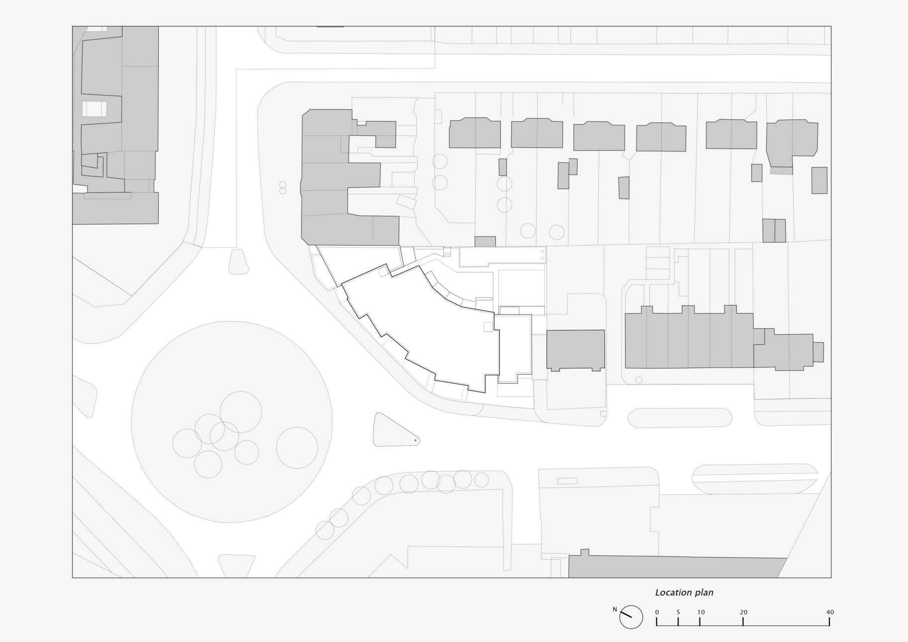 The site sits on a corner junction with buildings on either side, the proposed plan of the development follows the urban grain and development pattern along the street with the built areas closest to the street and pavement. The Southern part of the building sits broadly in line with the adjacent 4 storey apartment block on Field End Road, as the site curves to the North the building steps in and out to turn the corner and also meet with the alignment of the post office building on Eastcote Lane.